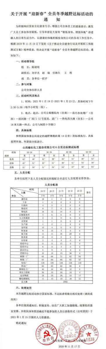 公司關(guān)于開展“迎新春”全員冬季越野達(dá)標(biāo)活動的通知