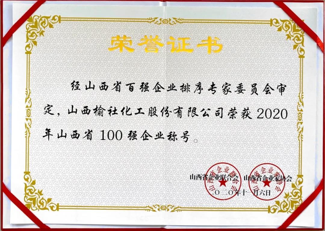 山西企聯(lián)攜手山西財經(jīng)大學,連續(xù)第17年向社會發(fā)布“山西企業(yè)100強排行榜”。同時發(fā)布《山西企業(yè)100強(年度)發(fā)展報告》。山西企業(yè)百強榜為綜合100強,制造業(yè)100強和服務(wù)業(yè)100強。2020山西企業(yè)100強營業(yè)收入總額20149.47億元,較上年提高7.7%,其中營業(yè)收入上千億的企業(yè)7家,入圍門檻16.48億元,比上年提高1.05億元,增幅6.8%。平均資產(chǎn)總額較上年增長7.46%。經(jīng)山西省百強企業(yè)排序?qū)<椅瘑T會審定,山西榆社化工股份有限公司榮獲2019年度功勛企業(yè)、2020年山西省100強企業(yè)稱號、2020年山西省制造業(yè)100強企業(yè)稱號。