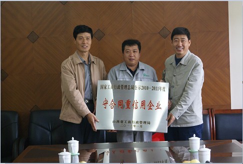 儀式上,公司副總經(jīng)理馮效恩詳細(xì)介紹了公司近年來(lái)的生產(chǎn)經(jīng)營(yíng)、市場(chǎng)銷售等情況。李局長(zhǎng)對(duì)公司近年來(lái)在合同管理、合同履約、保障債權(quán)人權(quán)益、依法納稅等方面做出的突出貢獻(xiàn)給予了高度肯定。并希望公司要珍惜榮譽(yù),再接再厲,充分發(fā)揚(yáng)新晉商精神,努力提高誠(chéng)信經(jīng)營(yíng)意識(shí)和管理水平,為推動(dòng)地方經(jīng)濟(jì)發(fā)展發(fā)揮模范帶頭作用。