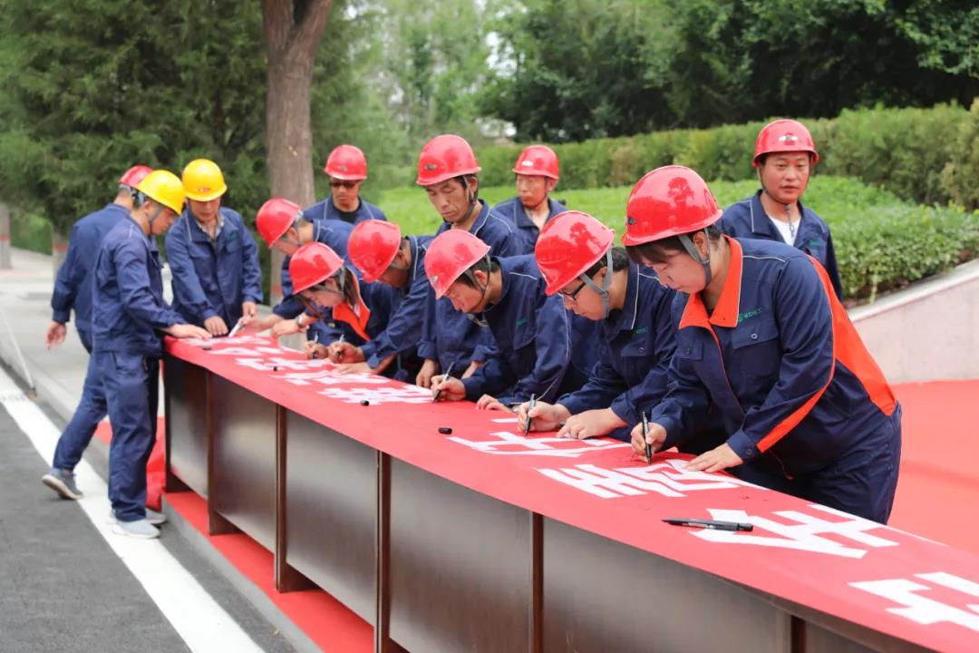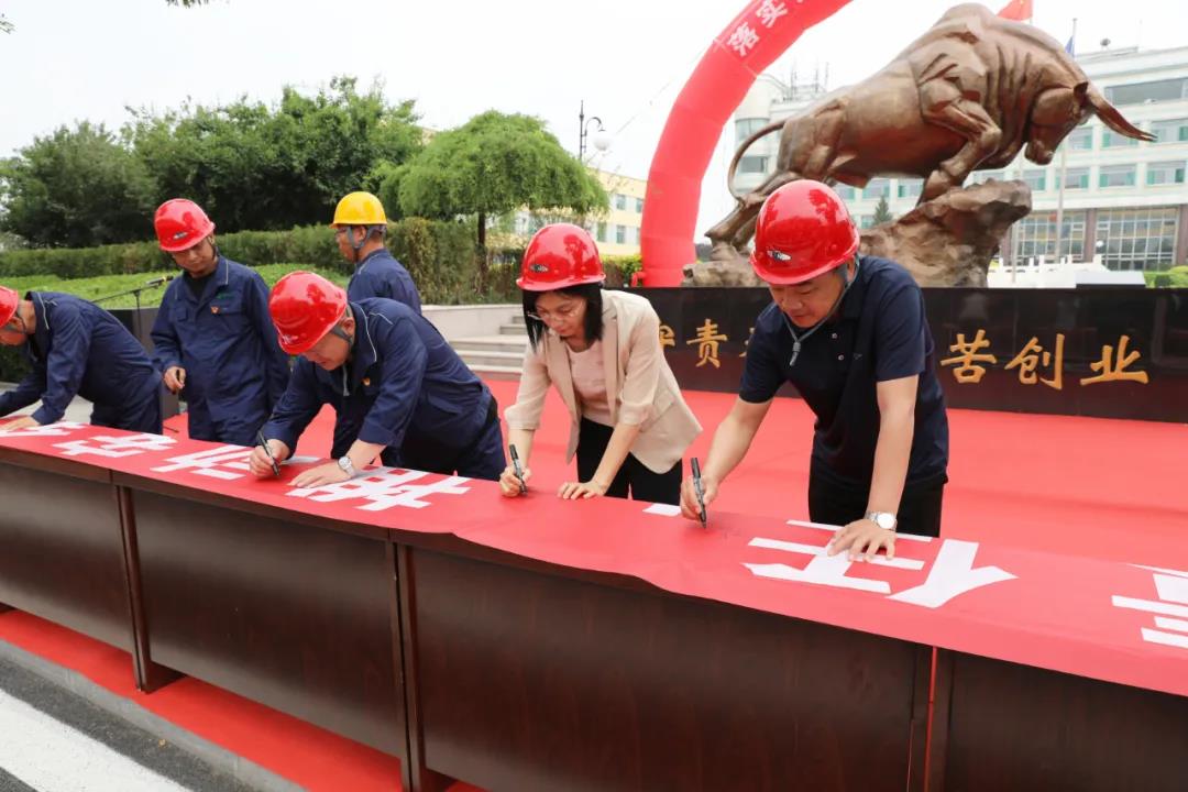 第三項,縣領導、公司領導、員工代表在“落實安全責任,推動安全發(fā)展”主題條幅上表決簽名。