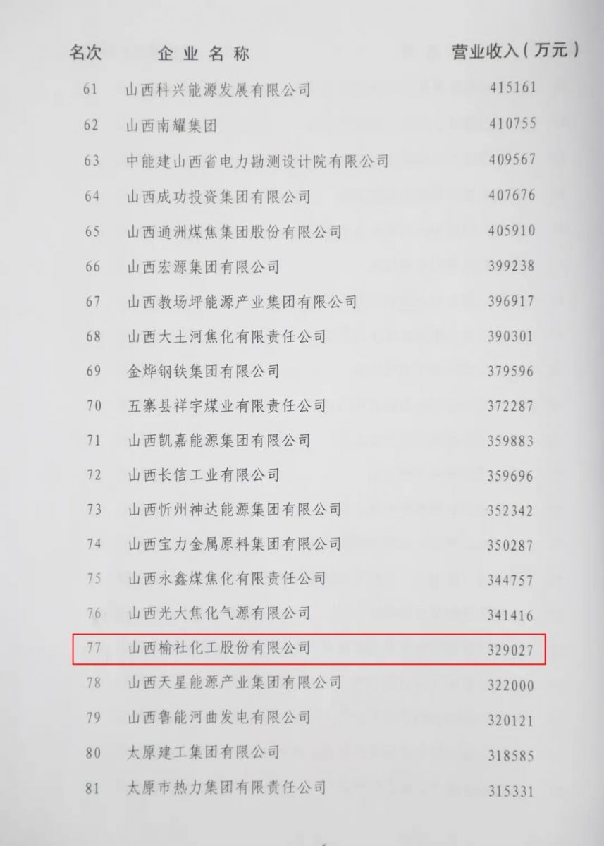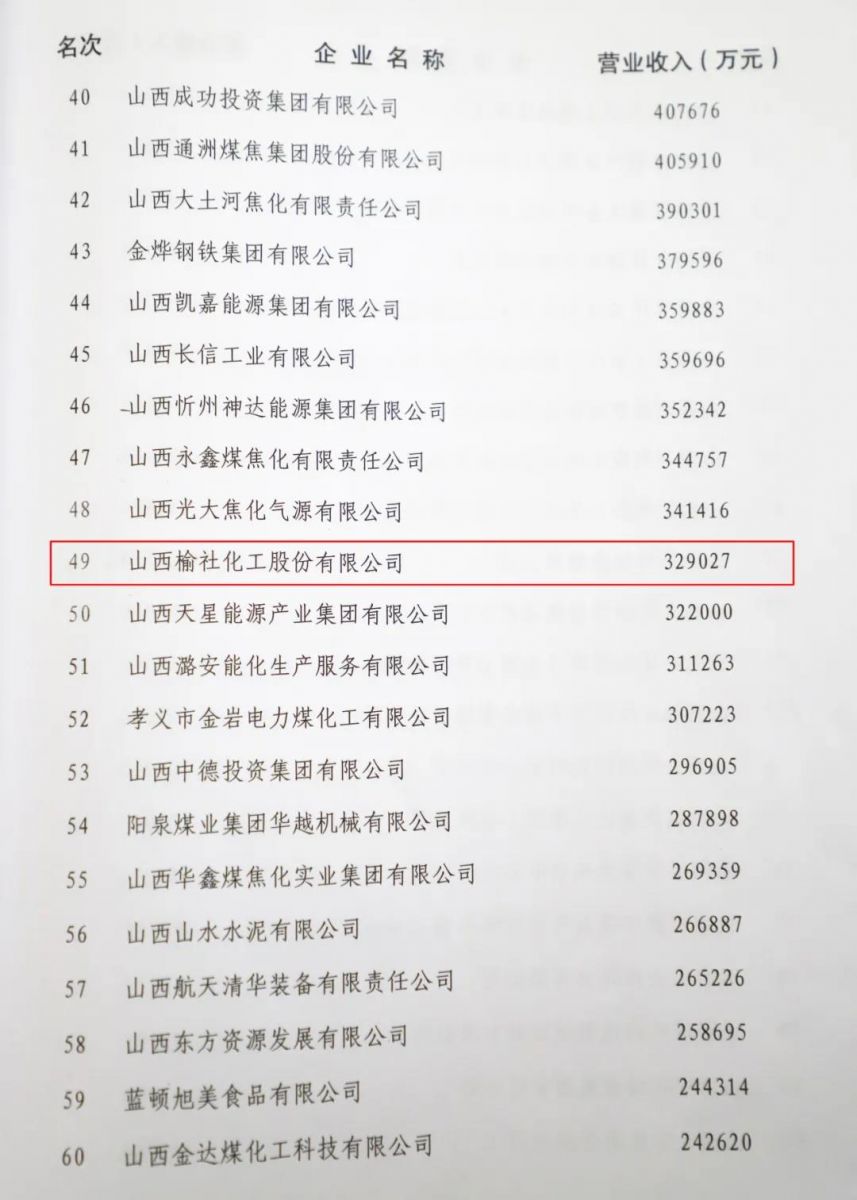11月18日,山西省企業(yè)聯(lián)合會(huì)、山西省企業(yè)家協(xié)會(huì)在太原大昌國際酒店召開第七屆會(huì)員代表大會(huì)暨2021山西企業(yè)100強(qiáng)發(fā)布會(huì)。會(huì)上,山西企聯(lián)攜手山西財(cái)經(jīng)大學(xué)向社會(huì)發(fā)布“山西企業(yè)100強(qiáng)排行榜”,同時(shí)發(fā)布《山西企業(yè)100強(qiáng)(年度)發(fā)展報(bào)告》。公司榮列2021年山西省100強(qiáng)企業(yè)第77位、2021年山西省制造業(yè)100強(qiáng)企業(yè)第49位。