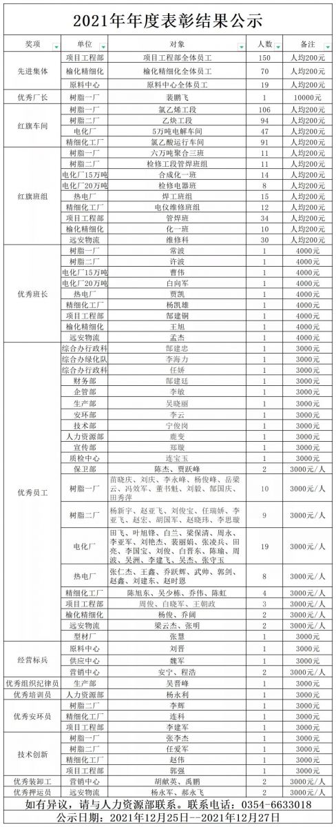 結(jié)合各單位推選出的先進(jìn)個(gè)人,2021年度共計(jì)表彰先進(jìn)集體3個(gè),紅旗車間4個(gè),紅旗班組9個(gè),先進(jìn)個(gè)人98名。