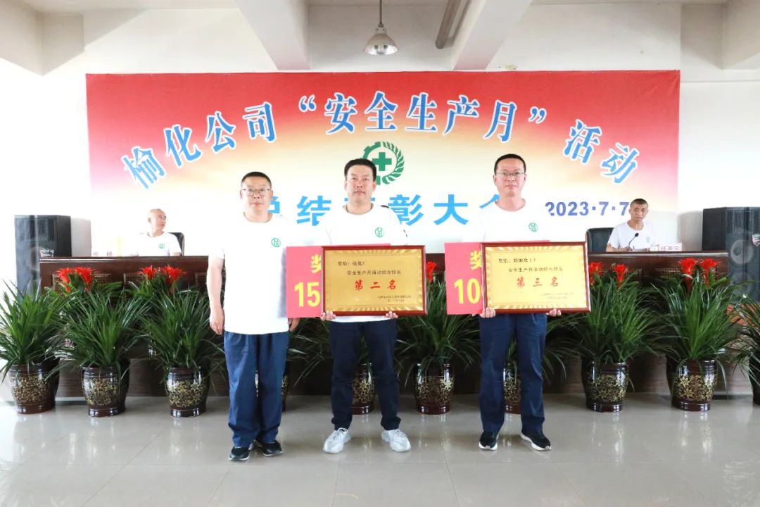 張楊為獲得“安全生產(chǎn)月”活動(dòng)知識競賽獎(jiǎng)的樹脂二廠、精細(xì)化工廠、電化廠頒獎(jiǎng)