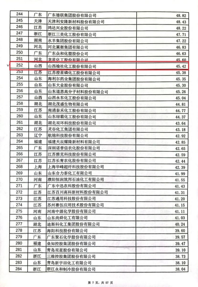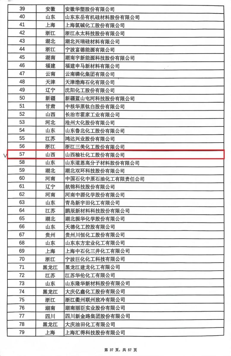 榆化公司在2023中國石油和化工企業(yè)500強排行榜位中位列252位,在2023年基礎化工原料企業(yè)100強中位列57位。