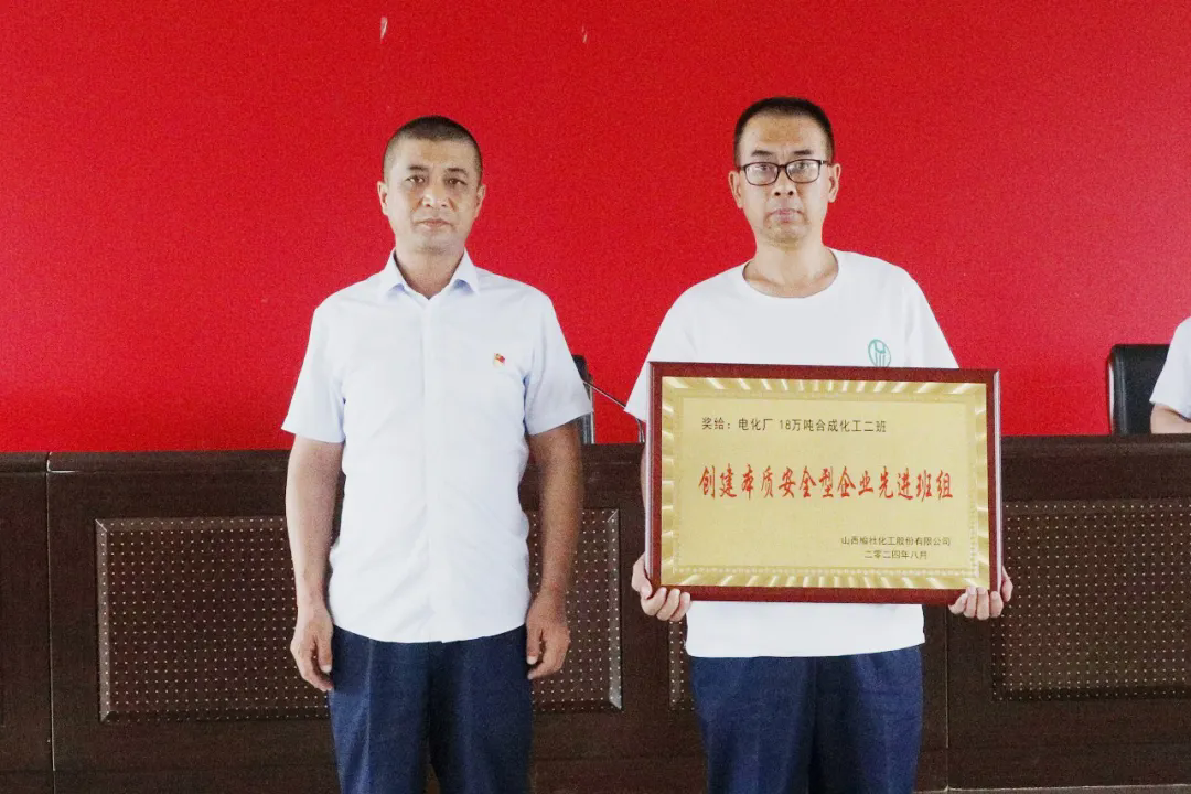 會(huì)議對(duì)在第一階段創(chuàng)建本質(zhì)安全型企業(yè)中取得突出成績的先進(jìn)班組“電化廠18萬噸合成化工二班”進(jìn)行了表彰,任開宇為其頒發(fā)榮譽(yù)獎(jiǎng)牌。班組負(fù)責(zé)人馬益波進(jìn)行了經(jīng)驗(yàn)交流分享。