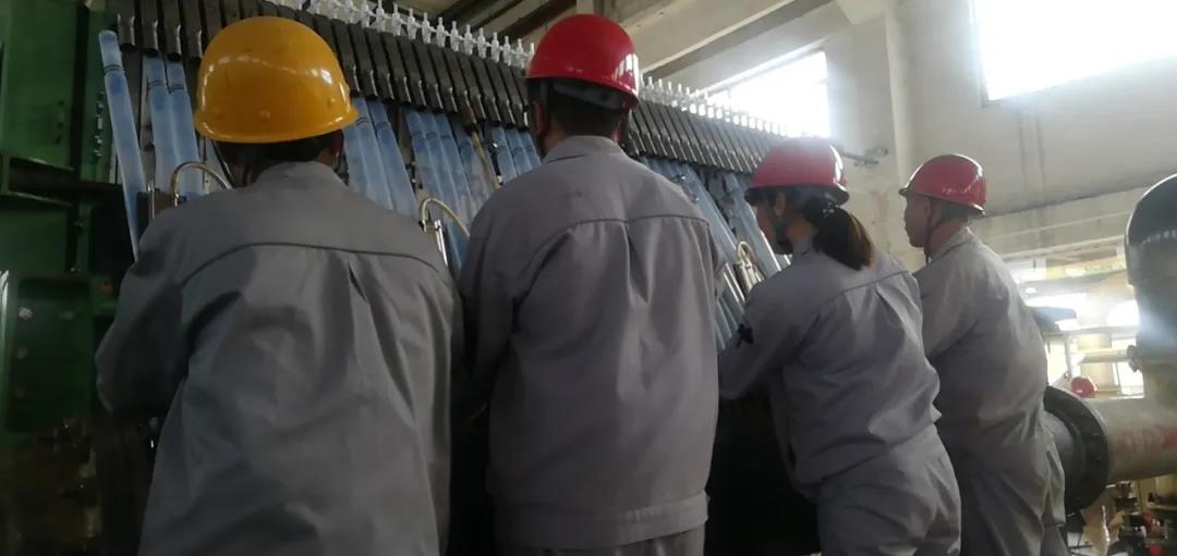 為了按時(shí)完成電解槽的拆槽、吊槽,貼膜,裝槽工作,保質(zhì)保量的順利開車,工人師傅們5:30到廠,6:00準(zhǔn)時(shí)開始貼膜,分廠領(lǐng)導(dǎo)一直蹲守現(xiàn)場(chǎng),嚴(yán)把每個(gè)工序質(zhì)量關(guān),檢修人員嚴(yán)謹(jǐn)細(xì)致,團(tuán)結(jié)協(xié)作,干部員工齊上陣,在保安全,保質(zhì)量的同時(shí),搶進(jìn)度,現(xiàn)場(chǎng)工作有條不紊,井然有序,在分廠干部員工的共同努力下,電解槽的技改工作按原計(jì)劃提前且順利完成。