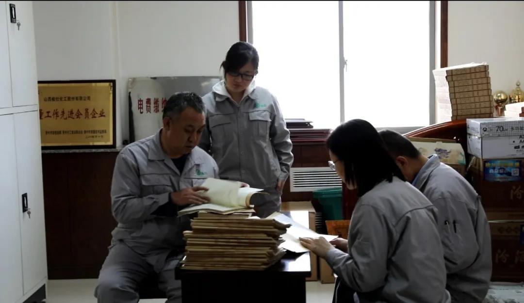 我們一次一次深入檔案室、縣檔案局,翻閱《化工簡(jiǎn)報(bào)》、《榆社化工報(bào)》及其他卷軼浩繁的史料,隨著一本本塵封多年的檔案被開(kāi)啟,一件件沉寂的往事被重新拾起,一個(gè)個(gè)曾經(jīng)奮斗的身影被重新演繹......廠史編纂委員會(huì)的同事常常被卷宗上年久積落的灰塵弄得噴嚏連連、甚至皮膚過(guò)敏;被檔案里發(fā)黃紙張上模糊不清的字跡弄得眼睛酸澀發(fā)脹;堆積如山的資料,分類標(biāo)記、逐頁(yè)翻閱,深怕遺漏,但凡看到國(guó)省市縣工業(yè)、化肥文件,榆化、化工字眼,反應(yīng)大背景、相似事件等文件都要從中尋覓有價(jià)值的信息,共計(jì)翻拍298份文件,回到公司還需要熟練運(yùn)用電腦技能,將瑣碎的資料整理成文檔,制作成圖表,編輯整理存檔......