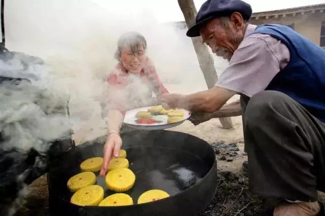 只見一個阿姨把包好餡的胚子放在案板上,另一個阿姨拿起月餅胚子壓在模子里,均勻按實,就在那案板上一磕,“啪”的一聲脆響,一個活脫脫的月餅就掉在案板上了。不一會功夫案板上就整齊地排滿了月餅胚子。剩下的事就是上爐烤了,看火的母親相當有經(jīng)驗,她不僅要先在鏊子上慢慢烤,烤的半熟時還要拿下來放到爐膛里烤,而且隨時用心看著,稍不注意就會烤焦。隨著一聲聲清脆的啪啪聲和阿姨們快活的聊天聲,一個個月餅就做好了,小孩們總會在旁邊得到些賞賜,把一些烤的有點糊的月餅嘗嘗鮮,更重要的是每家要烤一個大大的“假月餅”。