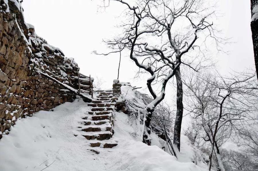 驅(qū)車從縣城出發(fā),經(jīng)山泉峪過(guò)大下車便進(jìn)入一段盤山公路,一路上零星幾處人家,寥寥幾縷煙火,雖說(shuō)是冬季,但山間松柏依舊發(fā)翠,草木夾雜著白雪,竟也分出黃、白、綠、灰諸多顏色來(lái)。冬季由于樹(shù)葉凋零,人的視野就格外開(kāi)闊了起來(lái),愈發(fā)覺(jué)得這山的巍峨、險(xiǎn)峻。