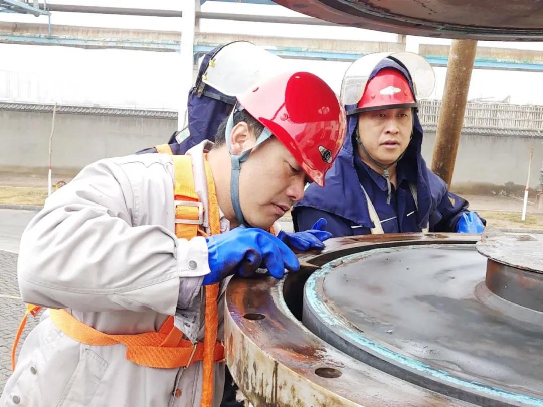 上午9時(shí),在分廠廠長岳偉鵬的親自指揮下,石墨冷卻器維修工作開始有條不紊的進(jìn)行,電儀、焊、鉗工分工明確。因?yàn)榈谝淮螜z修石墨換熱器,對(duì)內(nèi)部結(jié)構(gòu)不是特別了解,所以檢修工作相當(dāng)于是摸索中前進(jìn),對(duì)不懂的問題及時(shí)請教廠家技術(shù)人員或是查找相關(guān)資料。2月29日22時(shí),經(jīng)過打壓試漏,終于完成對(duì)換熱器的拆檢維修,目前運(yùn)行正常。在整個(gè)維修過程中,分廠全體干部緊緊盯守安全、票證、質(zhì)量、進(jìn)度四個(gè)工作要求,敢于創(chuàng)新,攻堅(jiān)克難。