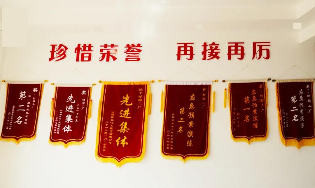 走進樹脂二廠的辦公樓,映入眼簾的是一塵不染的樓梯與干凈的猶如鏡子的地面,但是最最吸引你眼球的一定是兩面墻上懸掛著的錦旗和釘在墻上的獎狀。它們代表的是樹脂二廠的驕傲與榮譽。