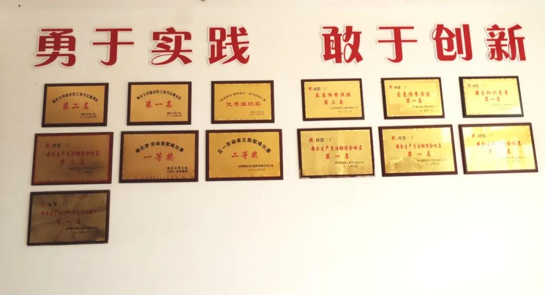 歌詠比賽的獎狀是我分廠領(lǐng)導(dǎo)與員工放棄休息時間,憑借一個個動作的完美,一個個音符的準確,不厭其煩的排練獲得的。那全場觀眾為我們歡呼,為我們鼓掌的畫面仍然令我們記憶猶新。還有安全知識競賽獎、技能比武獎等榮譽同樣訴說著樹二全體員工曾經(jīng)的努力與拼搏。