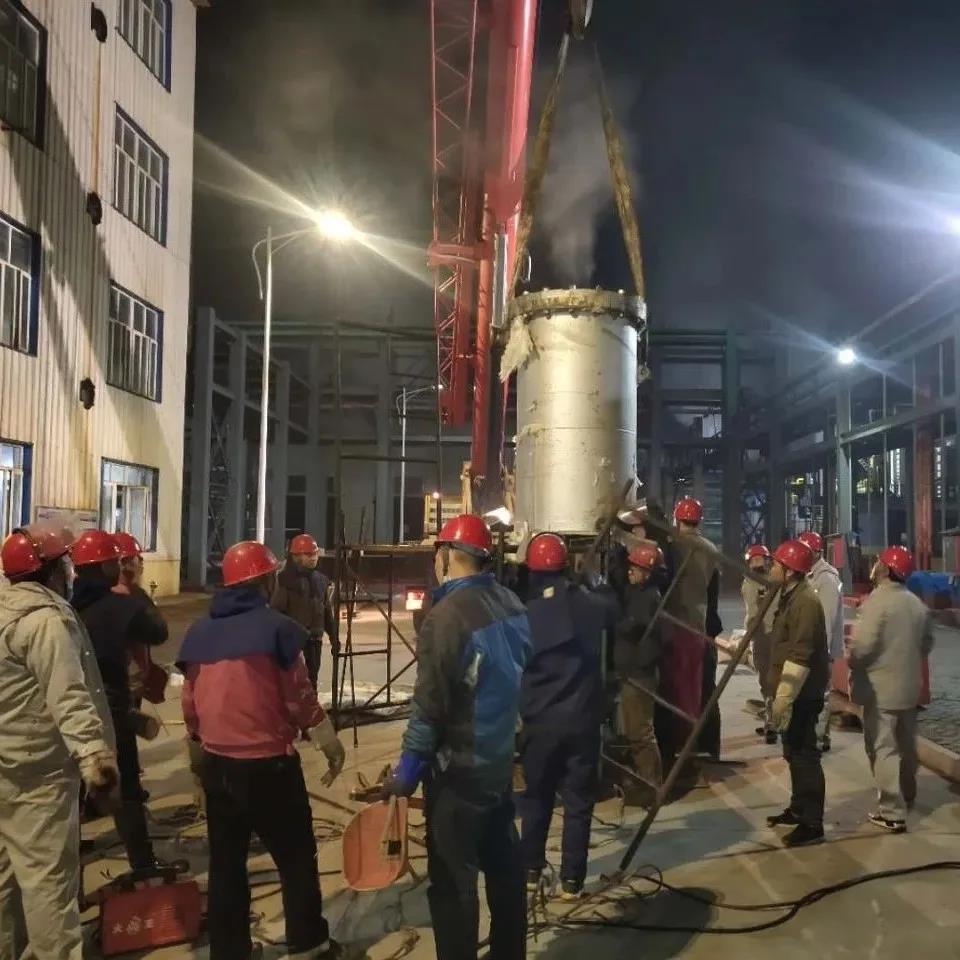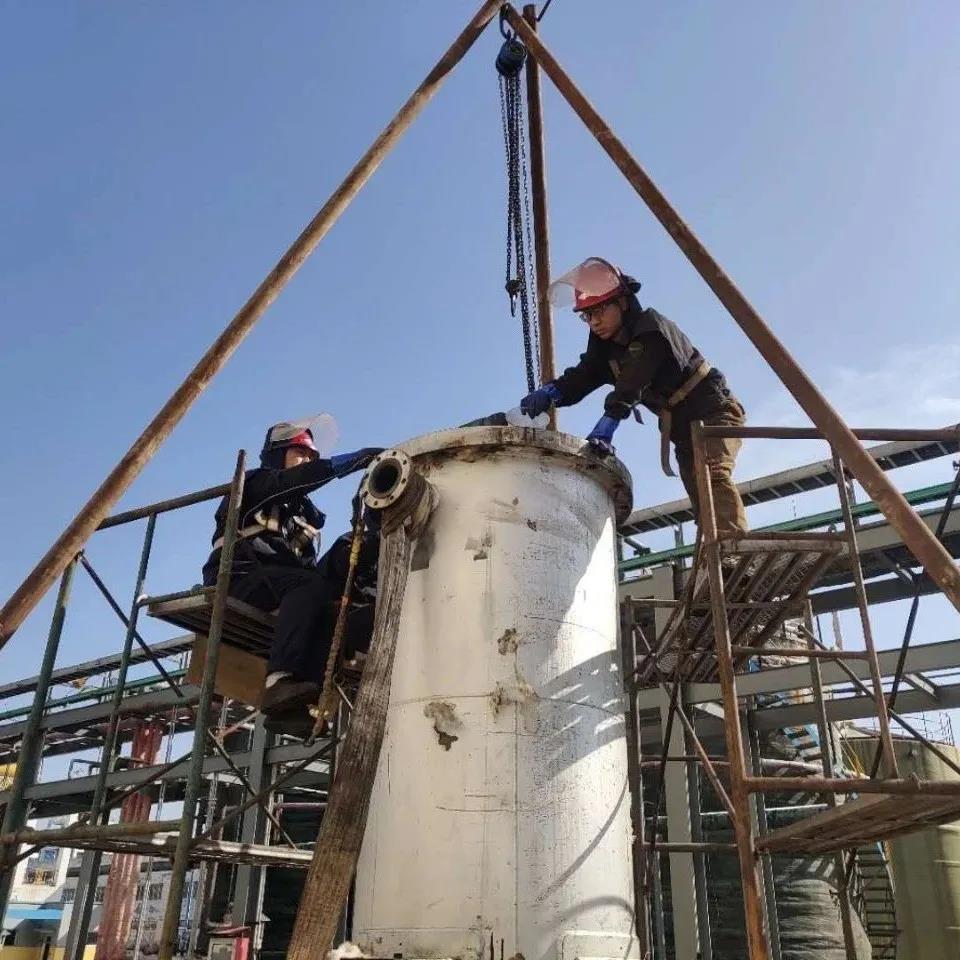 我廠所用的關(guān)鍵設(shè)備多為進(jìn)口設(shè)備,使用最多的就是上海賢達(dá)梅爾森過(guò)程設(shè)備有限公司生產(chǎn)的進(jìn)口石墨換熱器,其價(jià)格也是最為昂貴的一種。2020年2月28日大夜班操作工在巡檢中發(fā)現(xiàn)蒸餾A塔石墨換器底座有滲漏現(xiàn)象,并及時(shí)報(bào)告班長(zhǎng)、調(diào)度及值班干部。這臺(tái)設(shè)備出廠價(jià)高達(dá)110萬(wàn)元,即使返廠維修也需要12萬(wàn)元之多,維修周期也需要10-15天,不僅維修費(fèi)用高,且正值疫情期間,維修時(shí)間難以保障,經(jīng)廠部會(huì)議討論決定,自主對(duì)石墨換熱器進(jìn)行檢查維修。如果自主維修取得成功,不僅可以節(jié)省高昂的維修費(fèi)用,還能極大的縮短維修周期,及時(shí)保障系統(tǒng)正常運(yùn)行,也進(jìn)一步增強(qiáng)檢修人員的檢修經(jīng)驗(yàn)水平。次日9時(shí)整,在岳廠長(zhǎng)的親自指揮下,檢修工作開始有條不紊的進(jìn)行,電、儀、焊、鉗分工明確。因?yàn)槭鞘状螜z修此類設(shè)備,對(duì)內(nèi)部結(jié)構(gòu)不是特別了解,所以檢修工作相當(dāng)于是在摸索中前進(jìn),對(duì)不懂的問(wèn)題及時(shí)請(qǐng)教廠家技術(shù)人員或查找相關(guān)資料。晚上22時(shí),經(jīng)現(xiàn)場(chǎng)打壓試漏,終于完成對(duì)換熱器的拆檢維修,運(yùn)行指標(biāo)穩(wěn)定正常。在整個(gè)過(guò)程中全體干部緊盯安全、票證、質(zhì)量、進(jìn)度四個(gè)工作要求,敢于創(chuàng)新,攻堅(jiān)克難。這次檢修工作,開創(chuàng)了我廠自主維修進(jìn)口設(shè)備的先河,干部員工積累了豐富的工作經(jīng)驗(yàn),到目前為止通過(guò)類似的檢修工作,直接節(jié)省維修費(fèi)用超30萬(wàn)元。