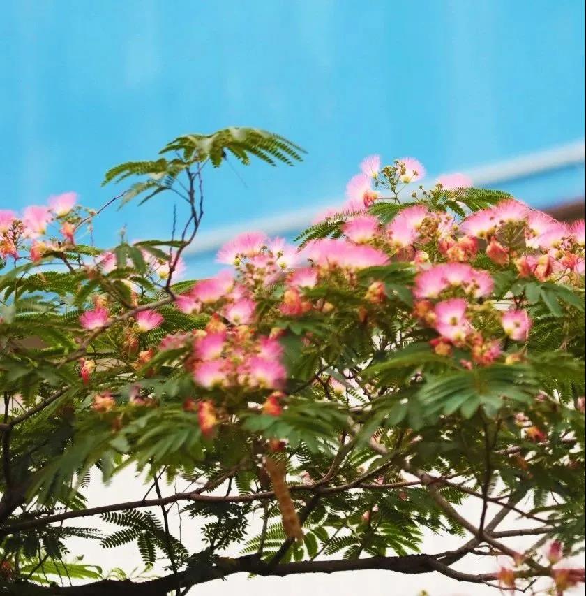 晨昏間熟悉的廣播,青煙裊裊的煙囪;轟鳴的機(jī)器,揮汗的工人;成蔭的綠樹,清脆的鳥鳴;灰黃相間排列整齊的廠房,隨處可見別有洞天的廠區(qū)小景;還有圍墻邊那幾株每年七月便綻放的寧?kù)o而又熱烈的合歡樹……讓我深深地愛著這里的一切……