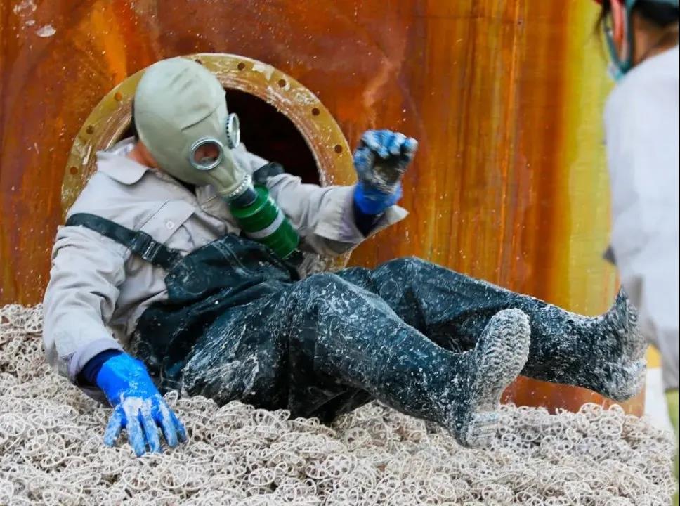 當(dāng)我走進(jìn)生產(chǎn)廠區(qū),看見這么一群人,他們滿面灰塵,一身滿是油污、灰里泛黑的工作服。凌晨三點(diǎn),電解車間氯氣泵突有雜音,調(diào)度鹿師傅趕緊聯(lián)系相關(guān)崗位降電流對(duì)氯氣泵進(jìn)行檢修,我們?nèi)珕T按照指令執(zhí)行,當(dāng)我停下匆匆忙忙的工作,抬頭看見檢修師傅已經(jīng)開始對(duì)泵進(jìn)行認(rèn)真的維修。他們沒有白天夜晚之分,戰(zhàn)高溫、斗酷暑、頂嚴(yán)寒、上管架、爬豎梯。巍巍的填料塔上,縱橫交錯(cuò)的管廊叢中,盡是他們穿梭的背影。他們就是我們可敬的檢修工。