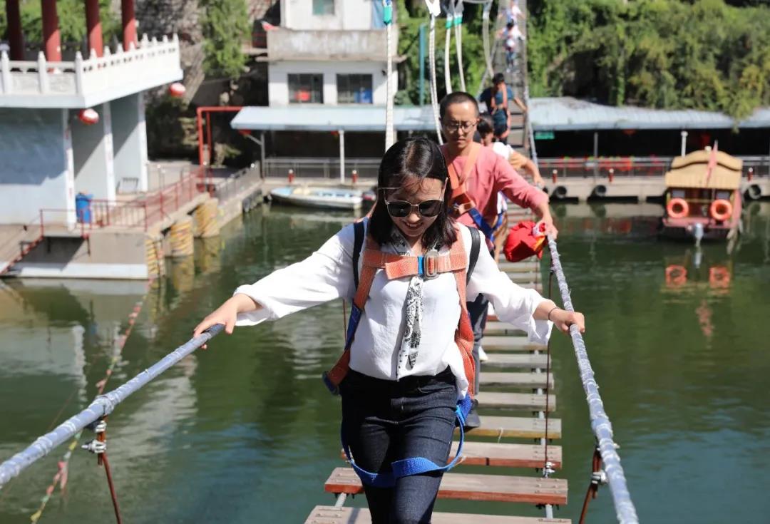 午餐結(jié)束,稍作休息,我們便起身前往下一個景點——娘子關(guān)瀑布。“娘子關(guān)頭懸瀑布,飛騰入谷化潛龍”,一股股山泉飛流直下,我們在山腳下望著、激動著。懸崖一側(cè)是玻璃棧道,通過玻璃棧道便是玻璃吊橋,在橋上娘子關(guān)的風(fēng)景盡收眼里,真是讓人流連忘返。從橋上下來,我們一行人開始了難忘的激流勇進(jìn),雖有點濕身,卻也一個個開懷大笑。接著我們乘船開始游覽平陽湖,據(jù)說這里是平陽公主當(dāng)年鎮(zhèn)守的地方所在,她的故事可歌可泣,讓我們后輩們也以她為傲。