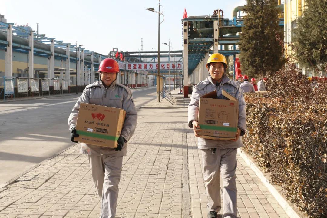 1月11日,公司繼發(fā)放河套面粉、五常大米、壺瓶大棗等過(guò)節(jié)福利物品后,又為員工發(fā)放了魯花壓榨花生油。