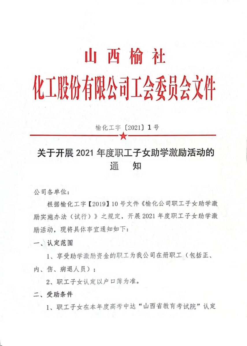關(guān)于開展2021年度職工子女助學(xué)激勵(lì)活動(dòng)的通知