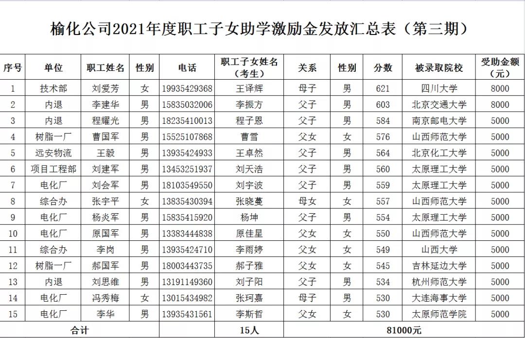 公司開展助學(xué)激勵,既是關(guān)愛職工辦實(shí)事、解民憂的“民生工程”,也是對青年人才教育的極大支持。活動自2019年啟動以來,已資助職工子女35人,累計(jì)發(fā)放助學(xué)激勵金205000元,受到了廣大員工以及社會各界的廣泛贊譽(yù)!其中,今年符合受助條件的有15人,共計(jì)發(fā)放助學(xué)激勵金81000元。