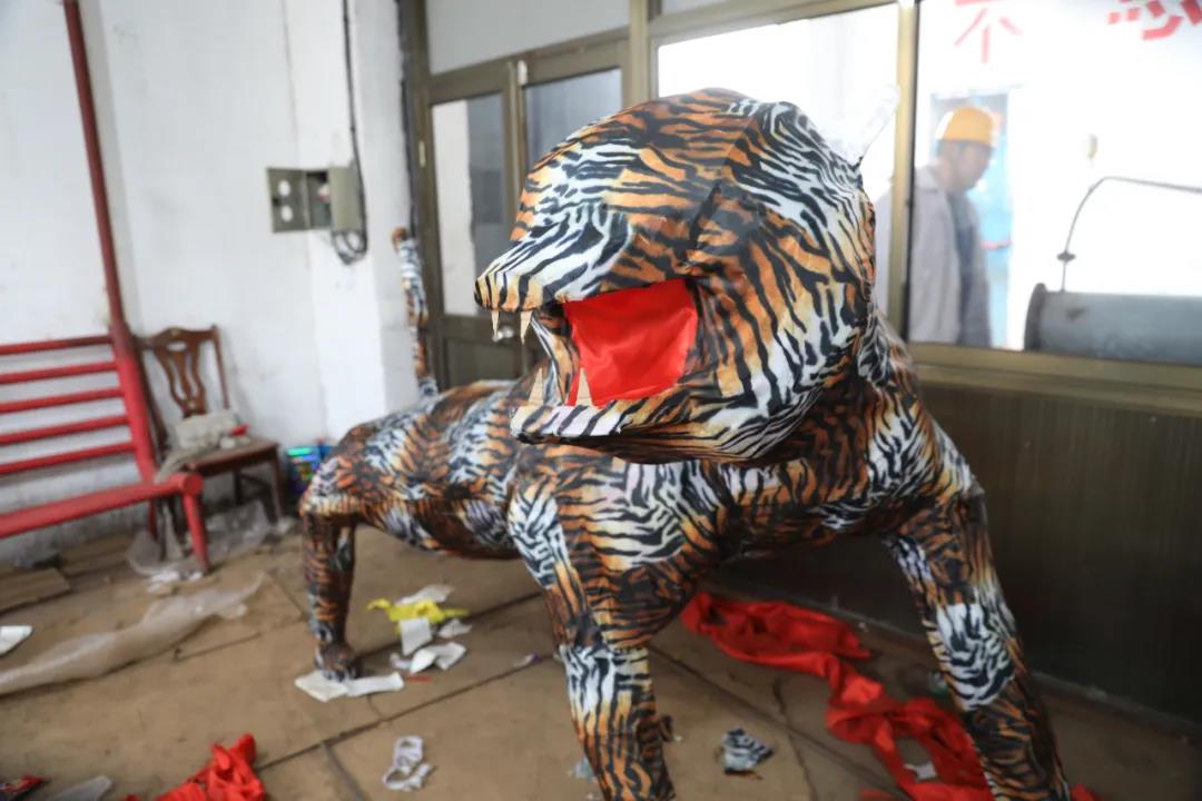 寅虎嘯天升靈山,丑牛離去洗舊年。項目工程部容器車間分3人一組利用半個月閑余時間,制作出了老虎、吊車、榆化標志等經典花燈。圍繞榆化主題,雙手托起榆化標,燈籠上刻畫中國夢,寓意著榆化在黨的領導下發(fā)展騰飛。此次燈展依托廢料的再次利用,有時做一對一樣的燈籠,在廢料堆又找不到一樣的材料,這時就需要員工對廢料再進行二次創(chuàng)作,直到一對燈籠完美呈現(xiàn)?;糌撠熑伺岷2ㄕf道:“這次活動大家都很重視,做出來的成品很有成就感,認真細致到光老虎就改版了三次以上。”他笑著說:“第一次做出來的老虎像猩猩,第二次做出來像一只狗,第三次發(fā)現(xiàn)縫上布,有了皮更像點,我們也沒有什么經驗,就是大家都說像就好了,只要有說不像的我們就一直改。”初次涉及花燈制作,大家都沒有經驗,摸著石頭過河,在網上找圖片、找教程,邊學邊做,盡力把我們對榆化的祝福展現(xiàn)出來。