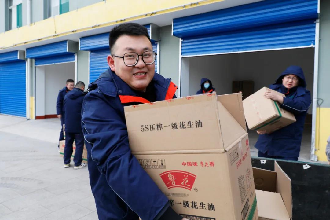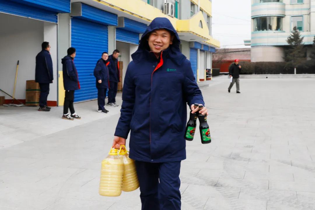 歲末甫至,年味漸濃。1月11日上午,一輛輛滿載著溫暖和關(guān)懷的福利貨車款款駛來(lái),為2800多名員工送來(lái)了春節(jié)福利大禮包。一袋袋優(yōu)質(zhì)的五常大米、河套白面,一箱箱魯花花生油、魯花全黑豆醬油整齊地?cái)[放到了各個(gè)分廠。各廠員工井井有條地排隊(duì)領(lǐng)取福利,幸福的笑容洋溢臉上,溫馨祥和的氛圍漫過(guò)了冬日的嚴(yán)寒。