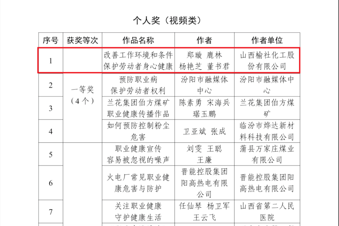 公司綜合辦公室宣傳科視頻類短片《改善工作環(huán)境和條件 保護勞動者身心健康》在全省第三屆職業(yè)健康傳播作品征集活動省級評選中獲得個人獎(視頻類)一等獎第一名。公司《改善工作環(huán)境和條件 保護勞動者身心健康》結(jié)合企業(yè)實際,從公司職業(yè)健康防護各項規(guī)章制度、設(shè)備設(shè)施、人文生態(tài)環(huán)境建設(shè)及專項培訓(xùn)等方面切入主題,內(nèi)容豐富,制作用心,體現(xiàn)了企業(yè)“一切為了勞動者健康的宗旨”,傳播了職業(yè)健康知識,倡導(dǎo)了健康工作方式,展現(xiàn)出新時代勞動者的健康形象和良好風(fēng)貌。