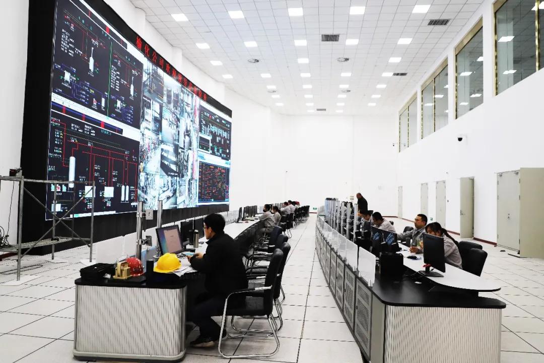 控制室選用國(guó)內(nèi)先進(jìn)的設(shè)備設(shè)施,采用DCS集散控制系統(tǒng),配套SIS系統(tǒng)、火災(zāi)報(bào)警系統(tǒng)、有毒有害氣體報(bào)警系統(tǒng)等先進(jìn)的運(yùn)行監(jiān)控系統(tǒng),實(shí)現(xiàn)遠(yuǎn)程監(jiān)控、遠(yuǎn)程操控;安裝了強(qiáng)力巨彩Q1.86全彩LED顯示屏,定制一體化操作臺(tái)64個(gè),其中電化二廠和樹(shù)脂二廠各32個(gè),實(shí)現(xiàn)了現(xiàn)場(chǎng)監(jiān)控清晰、操控穩(wěn)定可靠;安裝了中央空調(diào)系統(tǒng),配備防火閥和新風(fēng)化學(xué)過(guò)濾凈化空調(diào)機(jī)組,改善操作環(huán)境的同時(shí)最大限度保障安全;配備EPS、UPS電源系統(tǒng),在外部故障斷電的情況下保障控制系統(tǒng)正常運(yùn)作,降低故障斷電對(duì)系統(tǒng)的影響。
