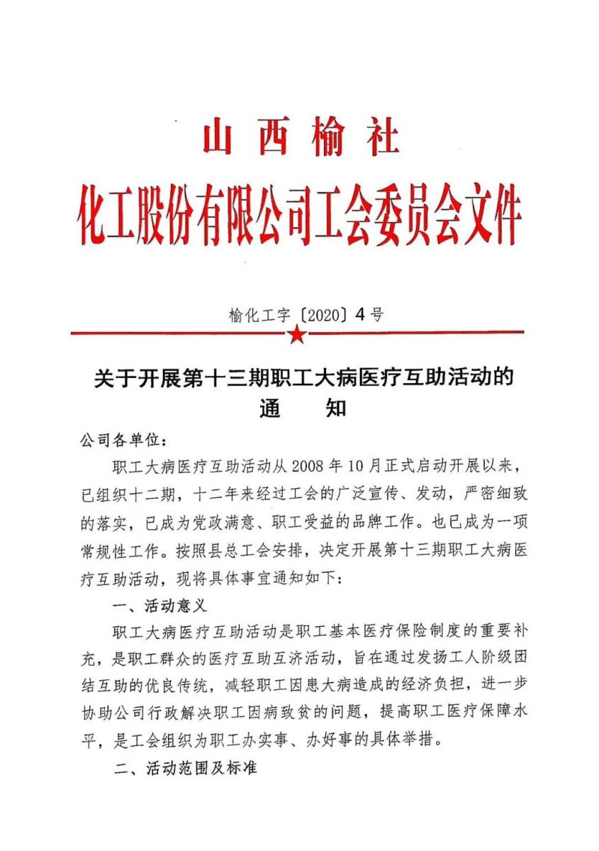 關(guān)于開展第十三期職工大病醫(yī)療互助活動的通知