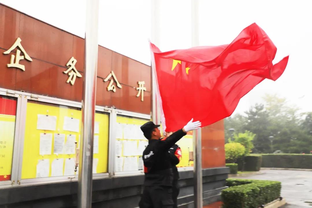 秋風(fēng)舞國 旗,晨曦慶華誕。為進(jìn)一步激發(fā)公司干職員工的愛國主義熱情,今天上午,公司舉行莊嚴(yán)的升國 旗儀式,慶祝中華人民共和國成立71周年,祝福偉大祖國繁榮昌盛。公司黨委書記、董事長劉俊及60余名干職員工代表來到公司樓前,面向升旗臺列隊(duì)整齊,精神飽滿。