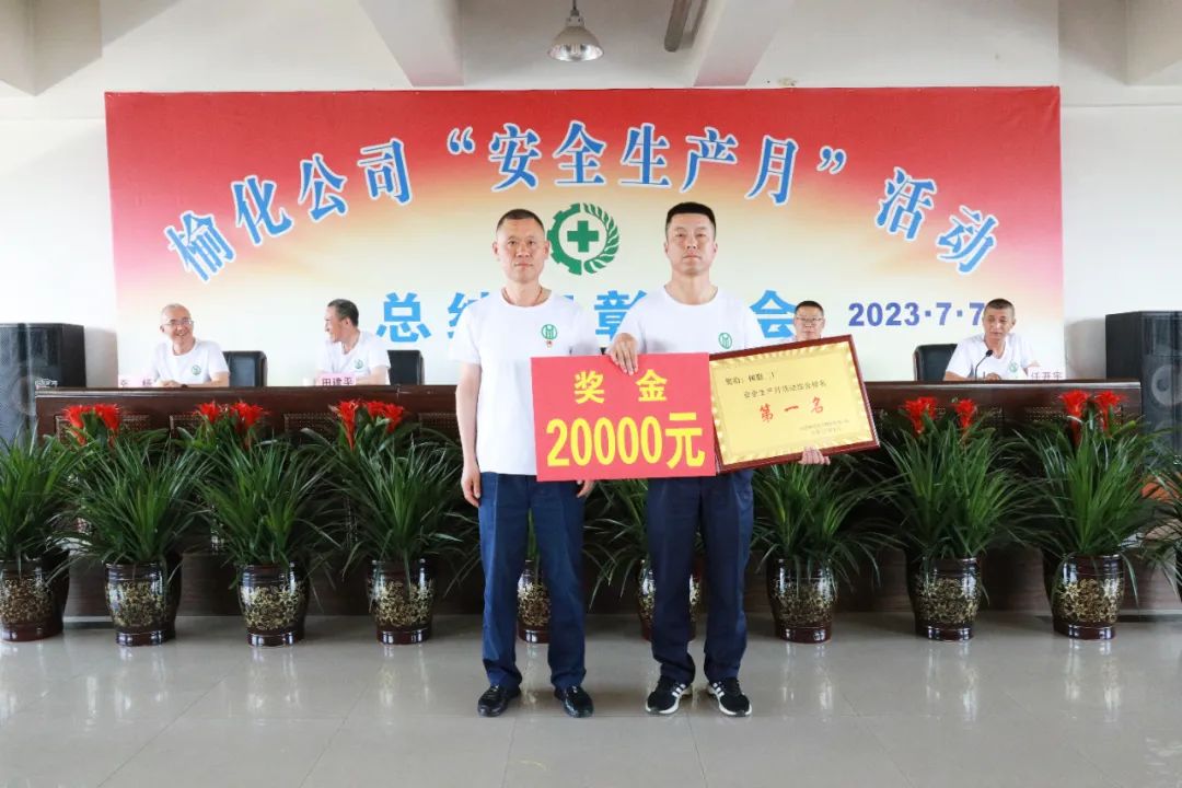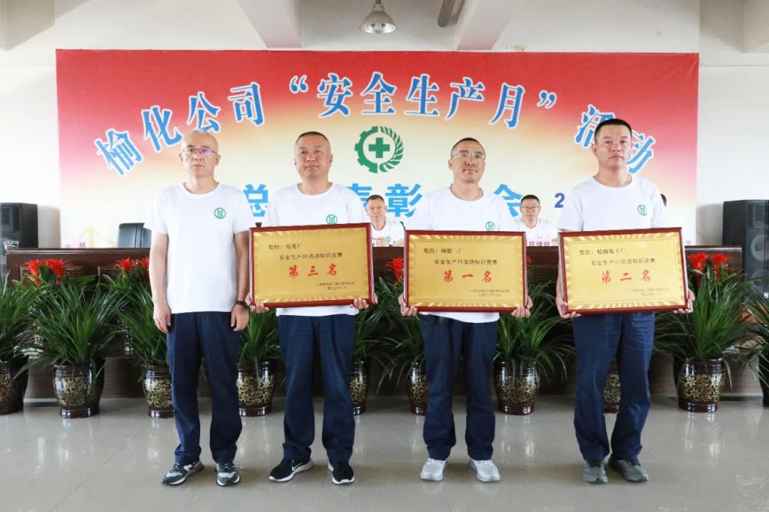 張楊為獲得“安全生產(chǎn)月”活動(dòng)知識競賽獎(jiǎng)的樹脂二廠、精細(xì)化工廠、電化廠頒獎(jiǎng)