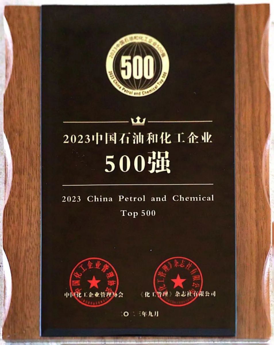 榆化公司在2023中國石油和化工企業(yè)500強排行榜位中位列252位,在2023年基礎化工原料企業(yè)100強中位列57位。