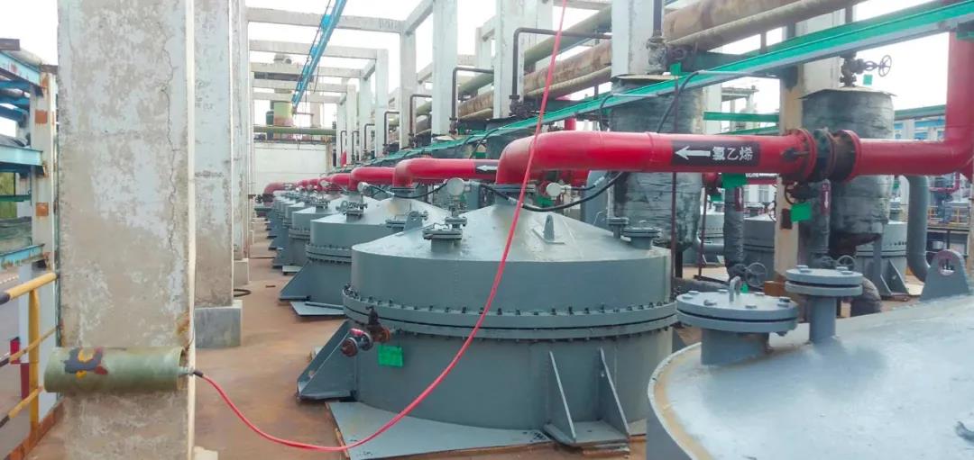 轉(zhuǎn)化器的正常運(yùn)行是氯乙烯工段穩(wěn)定的關(guān)鍵,除了要對轉(zhuǎn)化器進(jìn)行外部保養(yǎng)外,還要嚴(yán)格控制工藝指標(biāo),保證每臺轉(zhuǎn)化器的正常運(yùn)行。要求每個操作工精心調(diào)整配比,分析工按時做好分析,并且及時準(zhǔn)確的將數(shù)據(jù)報(bào)告微機(jī)工,切不可弄虛作假。儀表工加大力度將轉(zhuǎn)化器上有壞點(diǎn)的測溫桿換掉,必須保證微機(jī)上每臺轉(zhuǎn)化器的溫度顯示正?!,F(xiàn)場巡檢工按時對轉(zhuǎn)化器進(jìn)行排酸檢查,杜絕一切“跑、冒、滴、漏”,有不正常必須及時甩下處理。只有微機(jī)工、巡檢工、儀表工、分析工三者緊密聯(lián)系,齊心合作,才能保證轉(zhuǎn)化器的正常運(yùn)行,才是對轉(zhuǎn)化器最 好的維護(hù)保養(yǎng)。