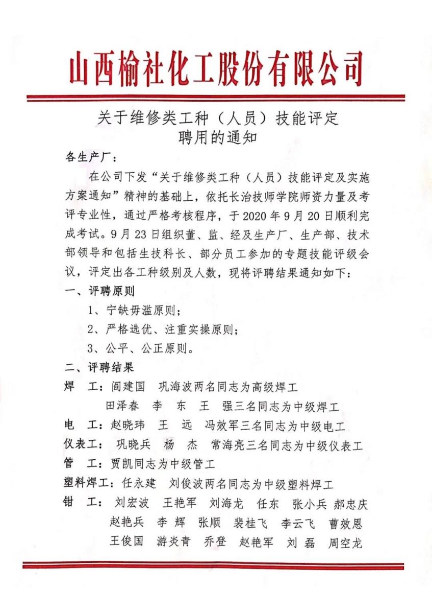 人力資源總監(jiān)陳緒明宣讀了各工種參考人員最終成績(jī)(匿名);與會(huì)領(lǐng)導(dǎo)結(jié)合實(shí)際成績(jī)情況、工種性質(zhì)、技能要求等多方面因素,堅(jiān)持公平公正、全面衡量、寧缺毋濫的原則,發(fā)表評(píng)定意見,確定各工種中、高級(jí)技能等級(jí)人數(shù)。