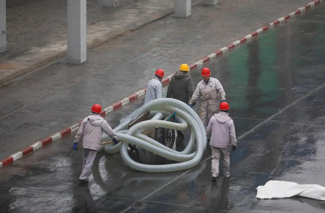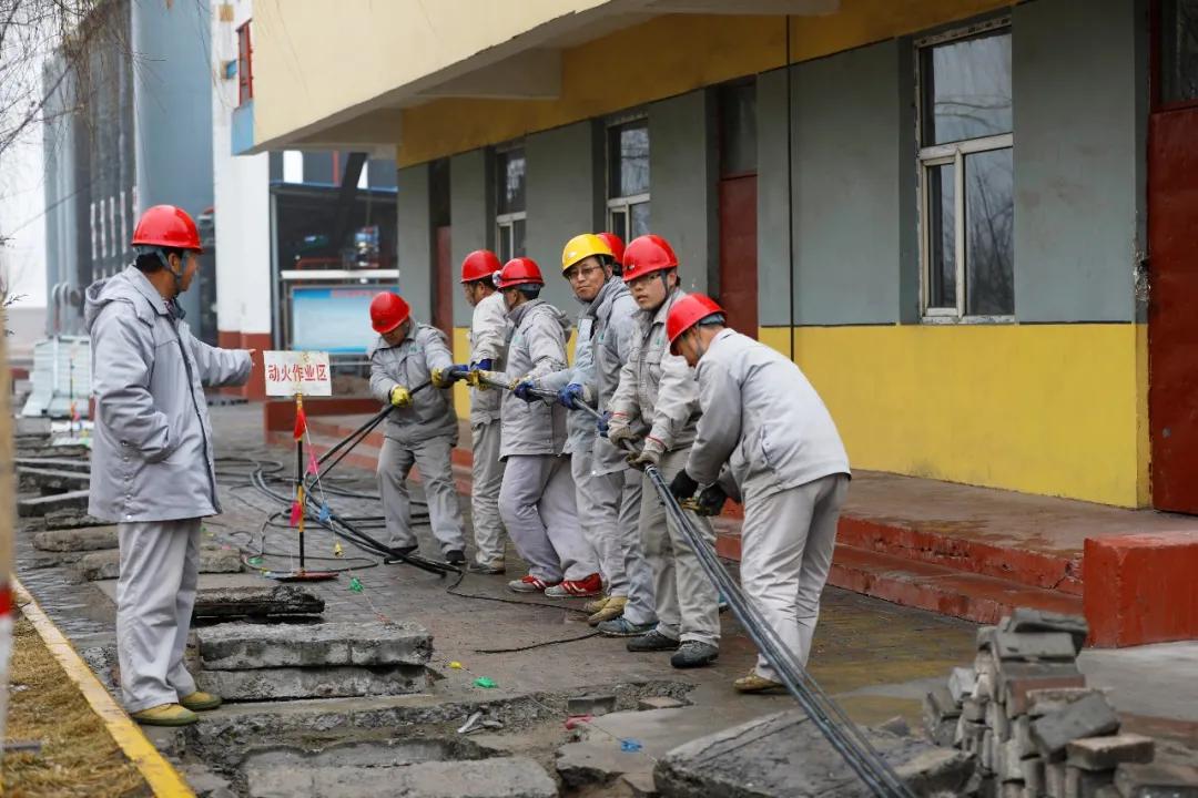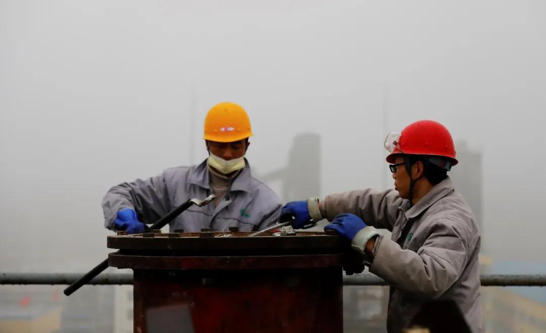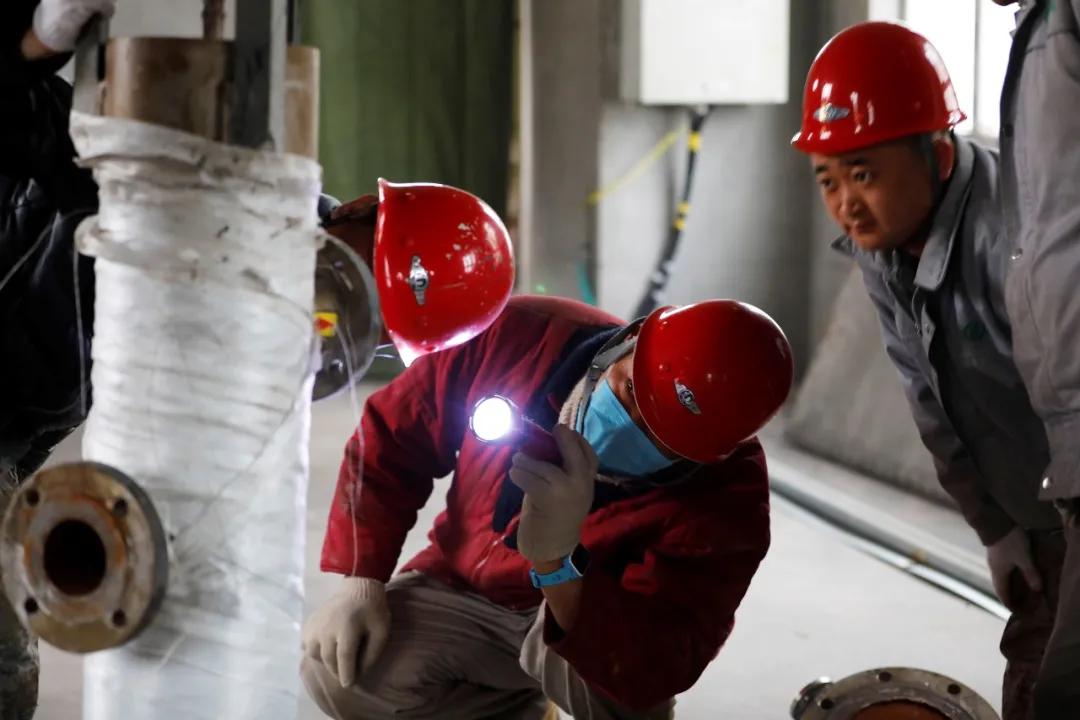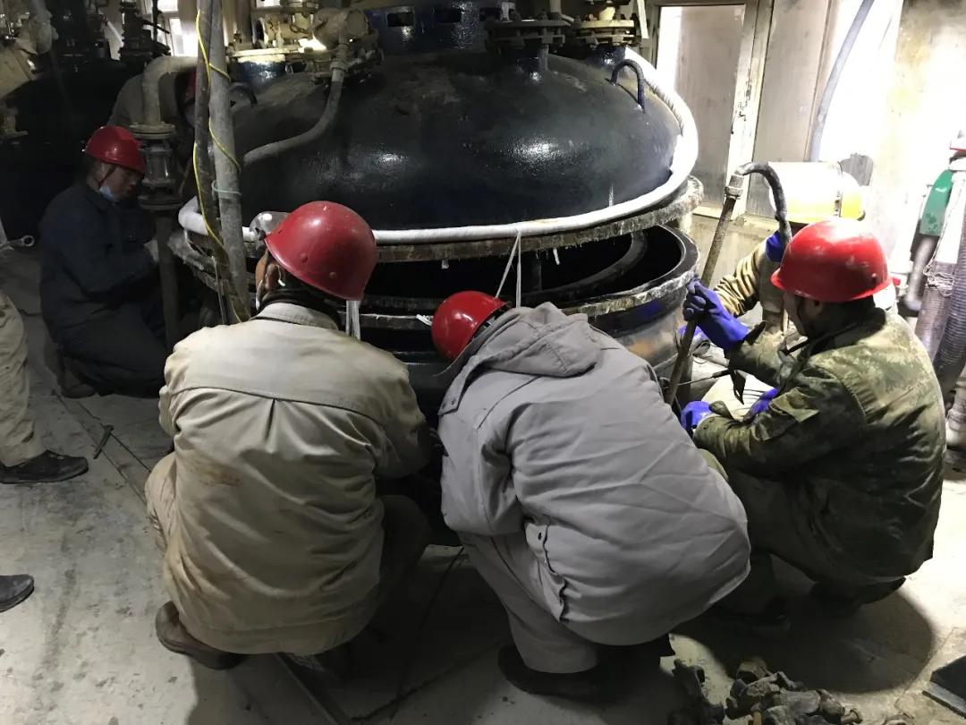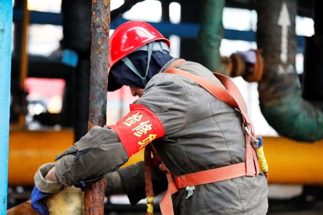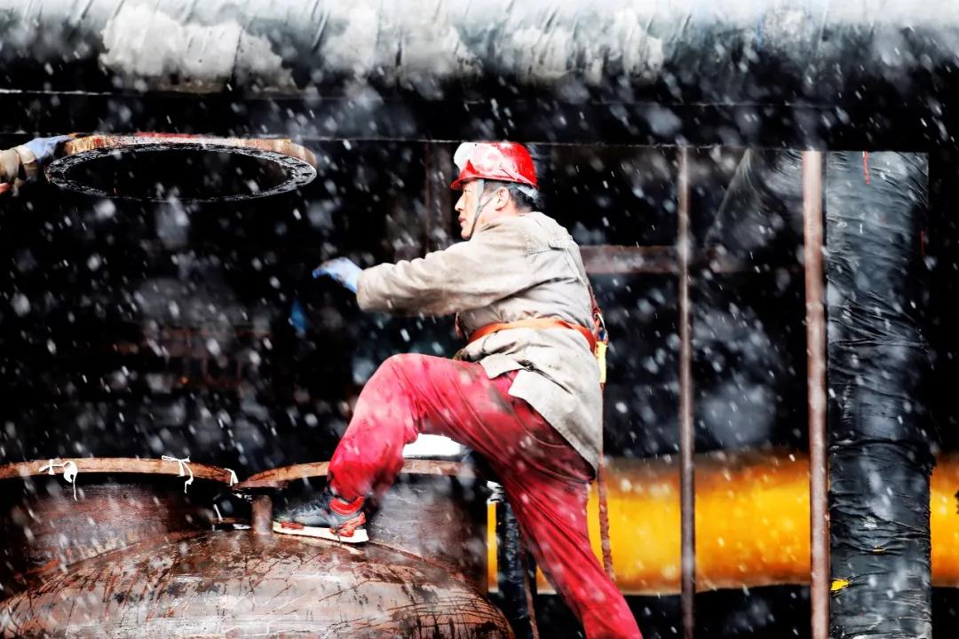 冒雪進(jìn)行乙炔冷卻器吊裝作業(yè)