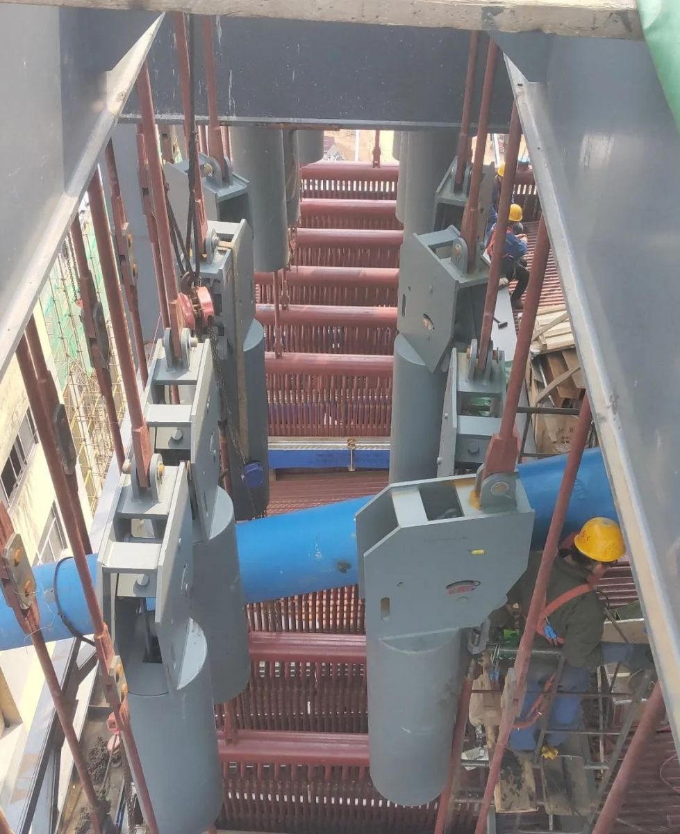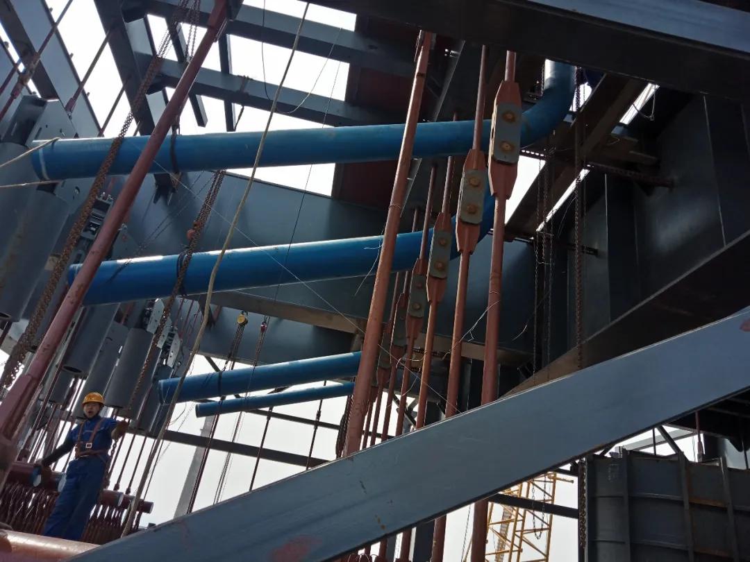 水冷壁、水冷屏、過(guò)熱屏、風(fēng)室已就位并焊接完成