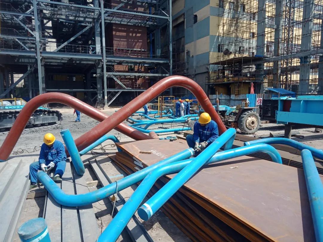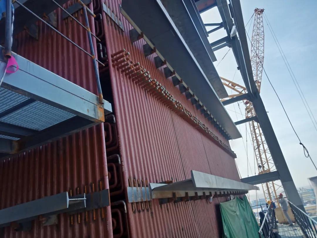 過熱器聯(lián)箱就位,準(zhǔn)備組對焊接。