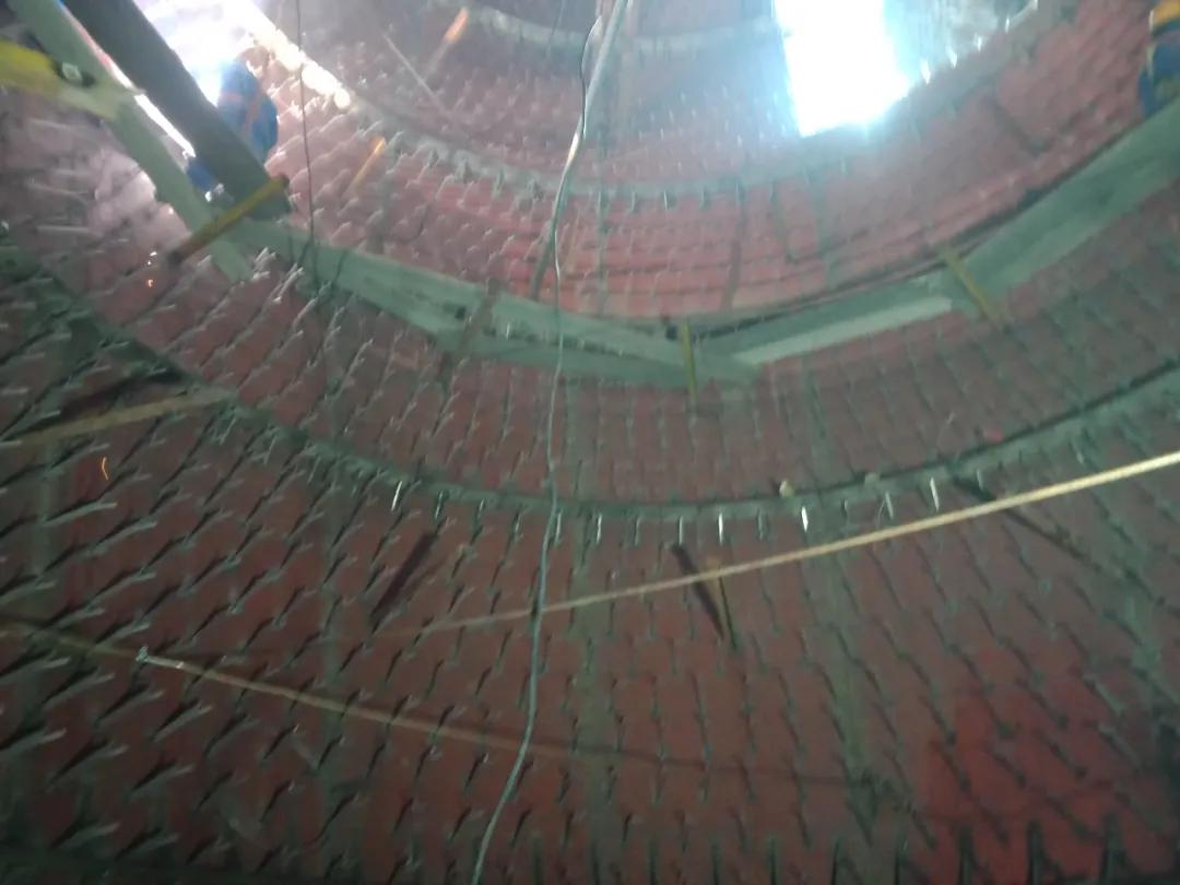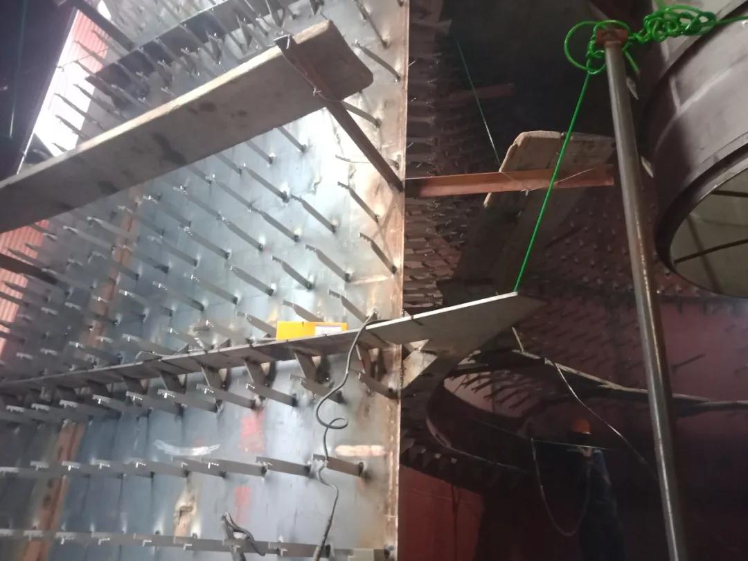兩臺旋風(fēng)分離器內(nèi)壁抓釘焊接一臺已基本完成,另一臺計劃一周內(nèi)完成。完成后交付筑礁保溫。