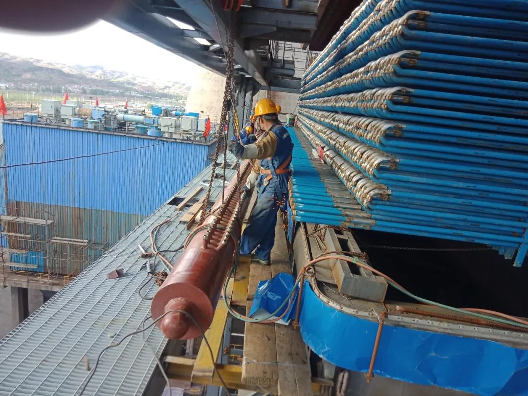 上下級省煤器全部就位,準備安裝上級省煤進口集箱