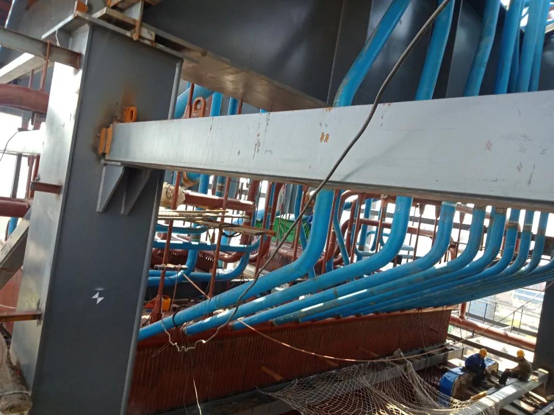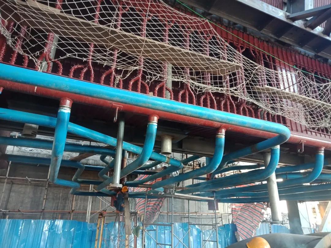 下降管與水冷壁、水冷屏連接管全部組裝完成,正在焊接