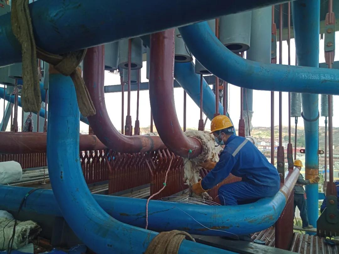 南面低過(guò)出口與過(guò)熱屏進(jìn)口連接管、南面過(guò)熱屏出口與高過(guò)進(jìn)口連接管已安裝完成
