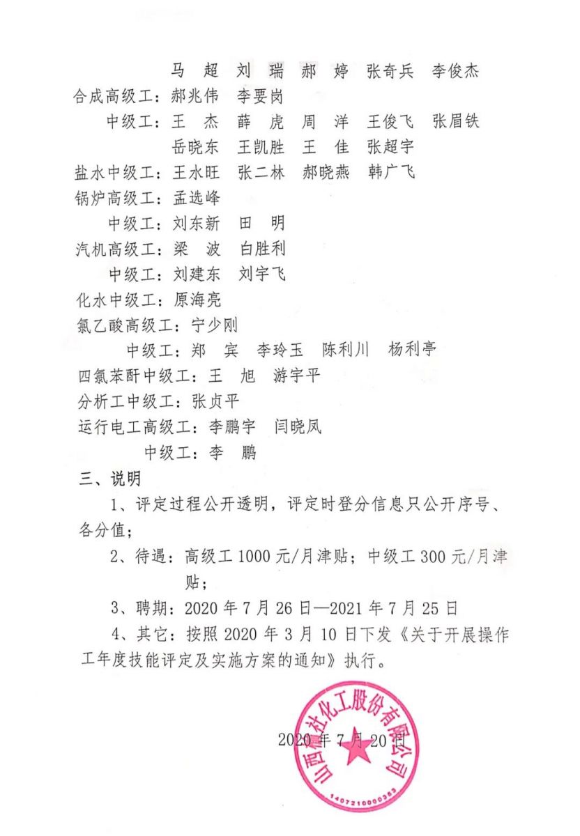 7月20日,公司召開操作工中、高級技能評定專題會議。公司董事長劉俊,副董事長、財務總監(jiān)楊柳青,總工程師田建平,考評組組長常耀剛,經(jīng)理層領導,技術部、生產(chǎn)部、子公司、生產(chǎn)廠負責人參加會議。會議由人力資源總監(jiān)陳緒明主持。