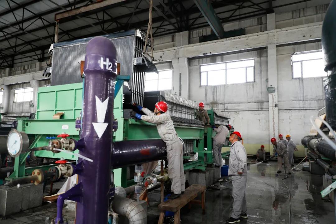 為實(shí)現(xiàn)極網(wǎng)進(jìn)降本增效,提高電解槽的電流效率,保障生產(chǎn)穩(wěn)定運(yùn)行,公司購(gòu)買目前國(guó)際最 新技術(shù)nx--BiTAC PLUS電解槽,對(duì)舊設(shè)備進(jìn)行更新?lián)Q代。9月25日,電化廠5萬(wàn)噸/年燒堿1#電解槽陰陽(yáng)行更換,10月15日,電化廠20萬(wàn)噸/年燒堿4#電解槽進(jìn)行技改。